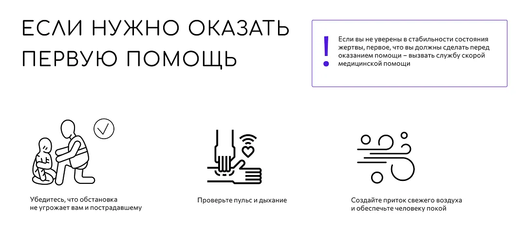 Мы рассмотрели самые вероятные экстренные ситуации, которые могут случиться, и привели примеры эффективных действий. Эта информация поможет вам последовательно действовать в критических обстоятельствах и соблюдать меры предосторожности, чтобы они не произошли. Если вы попали в экстренную ситуацию, сохраняйте спокойствие, следуйте правилам, которые описаны выше, и помните, что вы всегда можете позвонить по единому бесплатному номеру экстренной службы — «112».
